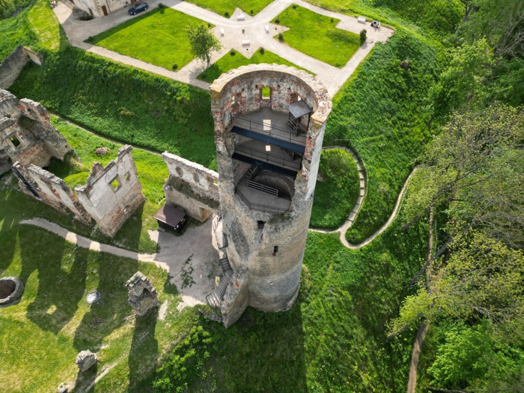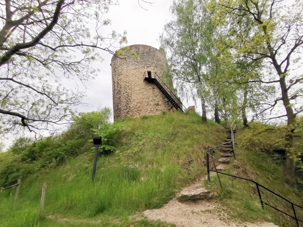 K rozhledně a zřícenině jsme se dostali „shora“, využili jsme parkovacích míst v zadní části satelitu. Je zde dost místa, teoreticky by se asi zda dalo i nocovat. Vstup do areálu zříceniny a vyhlídkové věže je zpoplatněn, platí se 40 Kč za osobu. Asi největší zajímavostí je šikmá věž, šikmé je i vnitřní schodiště vedoucí na její horní část. Výhled asi dle očekávání, na obzoru se rýsuje jak údolí řeky Jizery, tak Mladá Boleslav. Celkově bych to hodnotil jako nic moc.