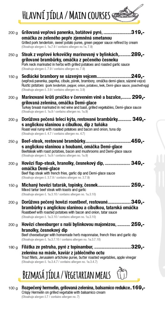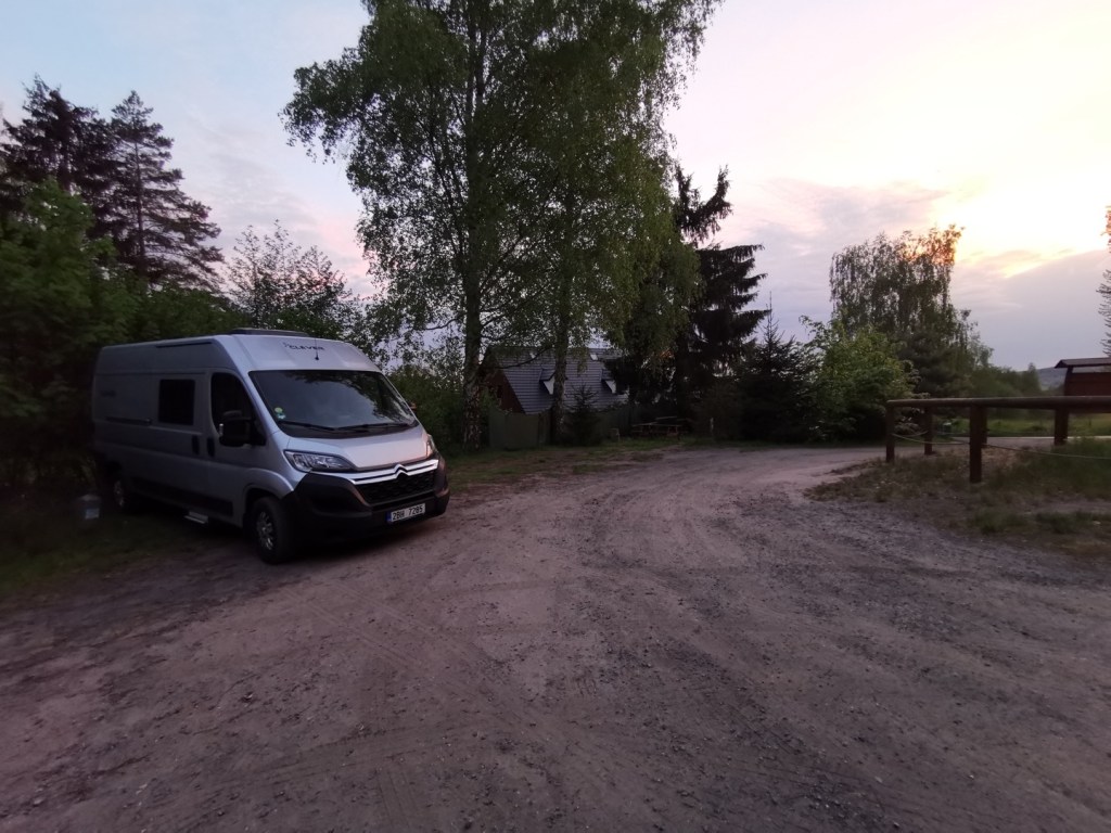 A odtud je to jen kousek k restauraci Na Krásné vyhlídce (https://www.nakrasnevyhlidce.cz/). I zde je parkoviště, ale o dost menší. Končí zde asfaltová cesta, je zde již zmíněná restaurace i další zábavy a to dohromady znamená, že je zde docela dost aut a tedy jet až sem s obytkou o víkendu nemusí být nejlepší nápad. Ale kousek před je i docela velká plocha z panelů, tam bylo ještě prázdno. Místo plně odpovídá svému jménu, je zde pěkně vidět do okolí a venkovní posezení zde teda má své kouzlo. Malá ukázka ceníku: