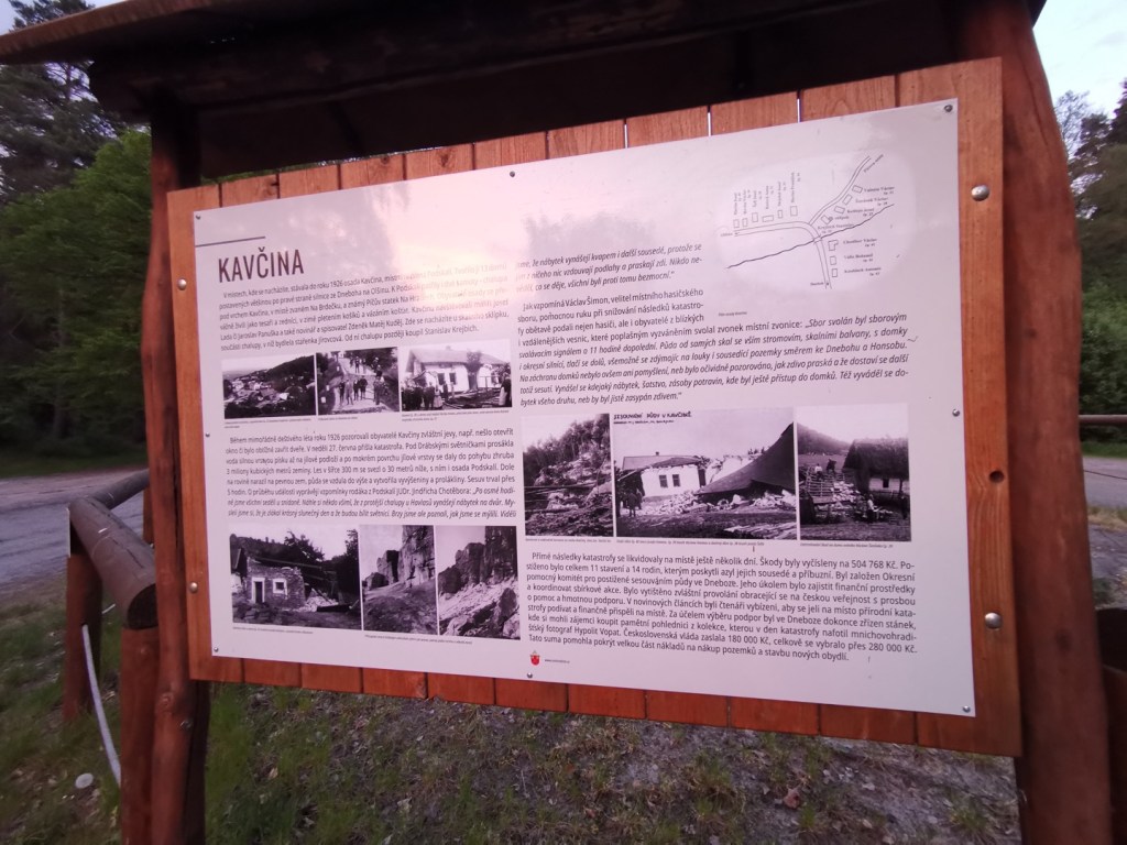 Dnes toto neštěstí připomínají šavlovitě zahnuté borovice na svahu při cestě na světničky. Obyvatelé osady si za pomoci sbírek a státu následně postavili nové domy přímo v Dnebohu a zaniklou osadu tak připomíná již pouze zbytek vytesané skály, dříve sklepa, u parkoviště pod světničkami (zdroj)