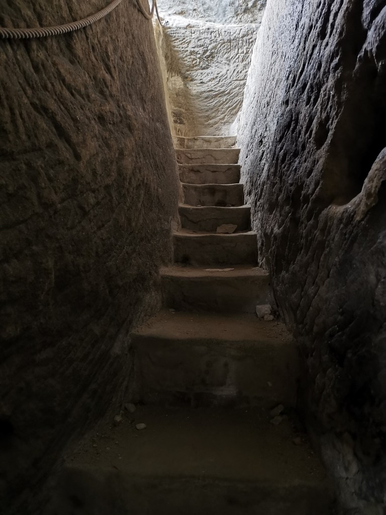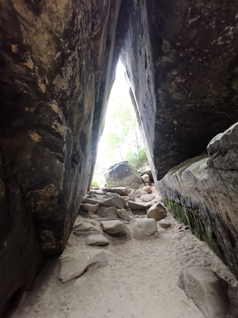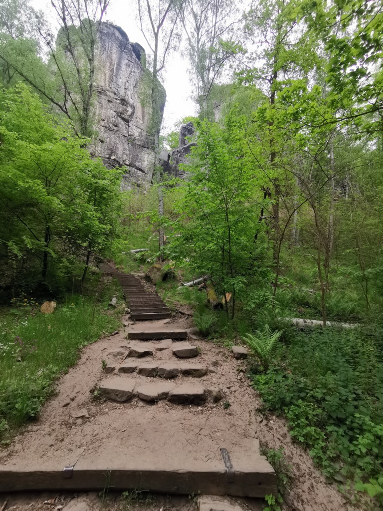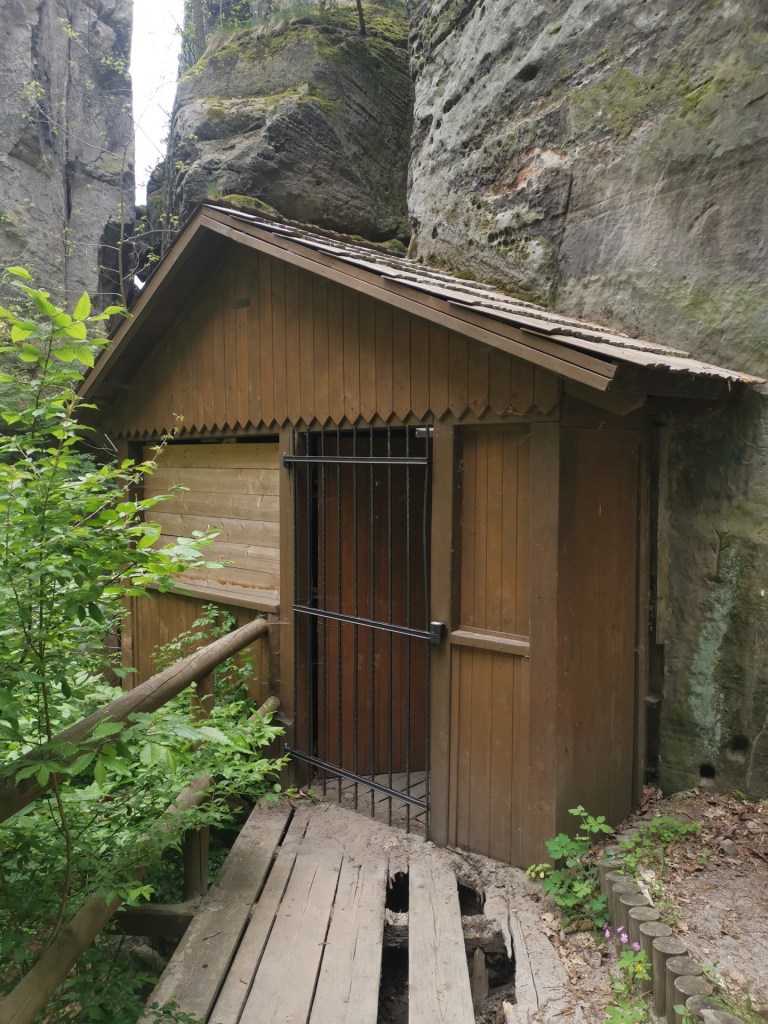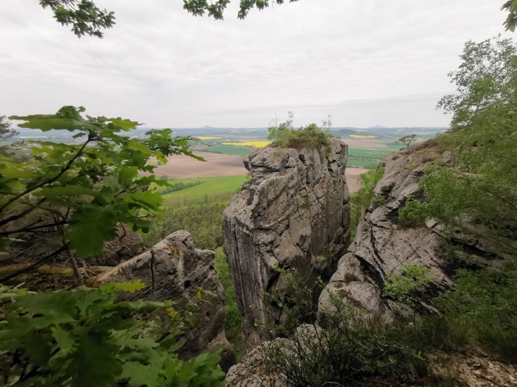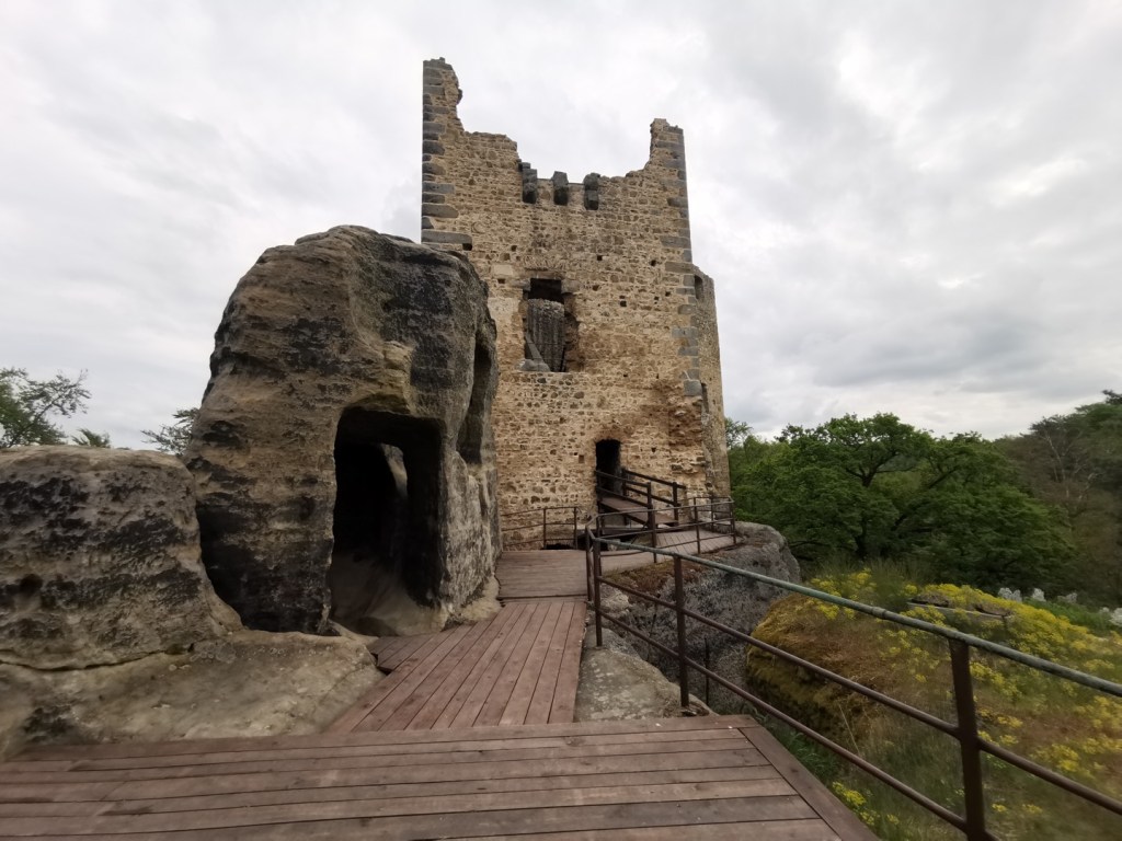 Ráno následujícího dne jsme vyrazili na výlet, směr Drábské světničky. Cesta od parkoviště je prakticky jediným zásadním stoupáním na celé trase. Nepříjemným překvapením byl ale uzavřený výstup na vyhlídku, prý je v havarijním stavu. I když překvapení…kdybychom si přečetli předem všechny informace, tak bychom to věděli. Čeká se zde na rekonstrukci, která by omezila nadměrnému opotřebení povrchu skal pohybem turistů a zároveň opravila nebezpečná místa.
