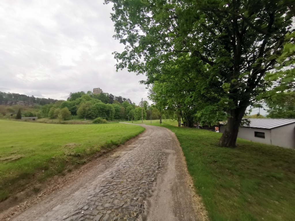 Následuje trasa ze Světniček po okraji velmi pěkné louky, cesty lze posléze odbočit i na zříceninu hradu Klamorna. Poté cesta sestoupí a pokračuje až směrem do Skalky lesem. U Skalky jsme volili cestu do obce Zásadka a odtud na zříceninu skalního hradu Valečov. I zde je parkoviště, kde by se dalo stát, je podstatně větší než u Drábských světniček, navíc je celá plocha téměř v rovině. Za parkování obytného auta zde chtějí 100 Kč na den.