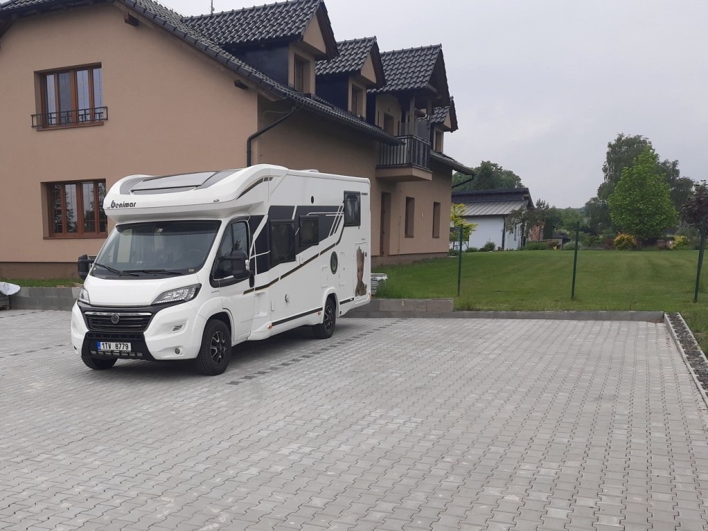 Je zde místo pro 4-5 obytných aut, s omezením hmotnosti do 3,5t a