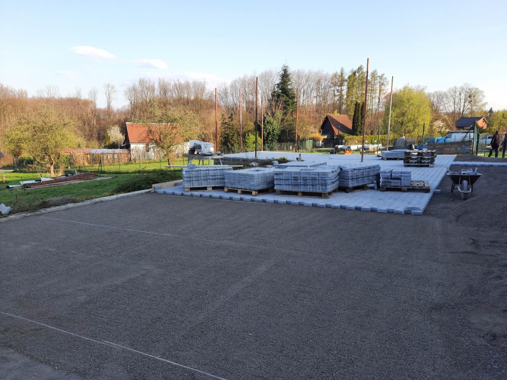 Realizace probíhala postupně, vybrána byla jen část fotek zachycujících postupný zrod místa. Od prvních zemních prací, po výkopy sítí, položení přípojek, montáž zámková dlažby i instalaci nezbytné technologie.