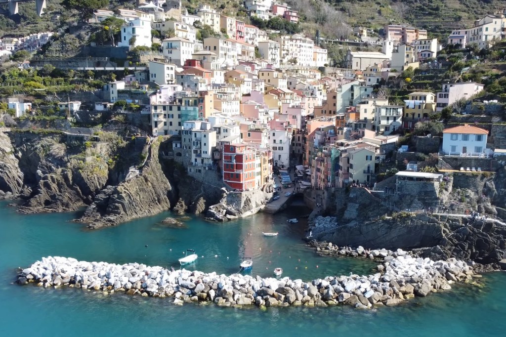 - Riomaggiore – pestrobarevné domky ční v různých úrovních nad malebným přístavem. V kostele San Giovanni Battista lze vidět vyřezávané Ukřižování.