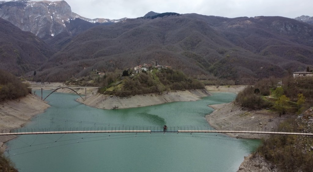 Na místě dnešní přehrady stávala vesnice. Ta ale padla za oběť stavbě v letech 1947 až 1953, kdy se vybudovala 92 metrů vysoká přehrada a tak vznikla nádrž Lago di Vagli. Ta se ovšem občas vypouští a tak se zbytky vesnice objeví nad hladinou. Další velké vypuštění je plánováno snad na příští rok. Ale již nyní zde není moc vody, přehrada pomalu vysychá a na břehu lze narazit i na jakési pohřebiště lodí. Přehradu lze tedy projít jak nad hladinou, tak i částečně po jejím dně. Poblíž je lanový park, zip line a nebo různé turistické cesty, včetně možnosti projít se přes visutý most spojující břehy jezera.