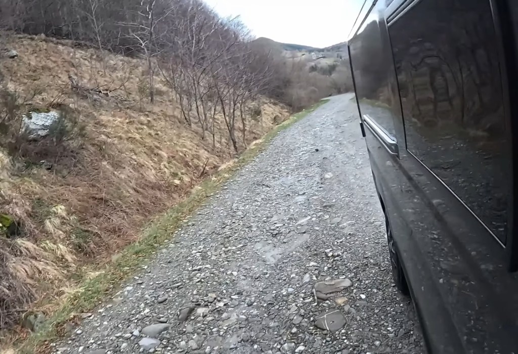 Příjezd na stání pod ferratou je poněkud náročnější, posledních 300 metrů je štěrková cesta do kopce a jede se na jedničku. Stání je pak v horském údolí s potokem za zády.
