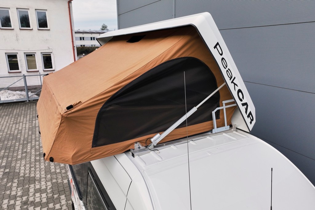 Část nevýhod, tedy zejména prostor a teplenou pohodu, se ale rozhodli vyřešit konstruktéři z firmy PeakCar. Firmu tvoří nadšenci, které léta baví. cestování mimo běžné cesty a s vozy vlastní konstrukce. Mají tak dostatek zkušeností pro návrh funkčních obytných aut, specializují se především na vestavby.
