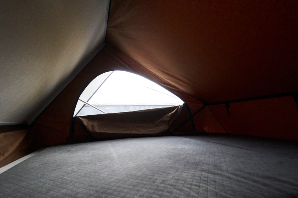 Ty se přesunuly do výklopné stanové střechy,, která je zcela integrována do vozidla. Stan se zde vyklápí částečně mimo půdorys vozidla. Stěny stanu tvoří 100% bavlna o gramáži 300g/m2, plátno odolné proti nečistotám a plísním. Nespí se zde podélně jako u běžných zdvihacích stanových střech, ale příčně. Postel, či snad lépe plocha pro spaní, má rozměry 255 x 190 cm, vevnitř stanu lze nalézt osvětlení i USB zásuvky, přiveden je výdech topení. I za mrazu -14°C by topení mělo být schopné zabezpečit pocitově příjemnou teplotu na spaní, tj.19°C. Na venkovní stranu pevné odklápěcí části lze namontovat fotovoltaické panely.