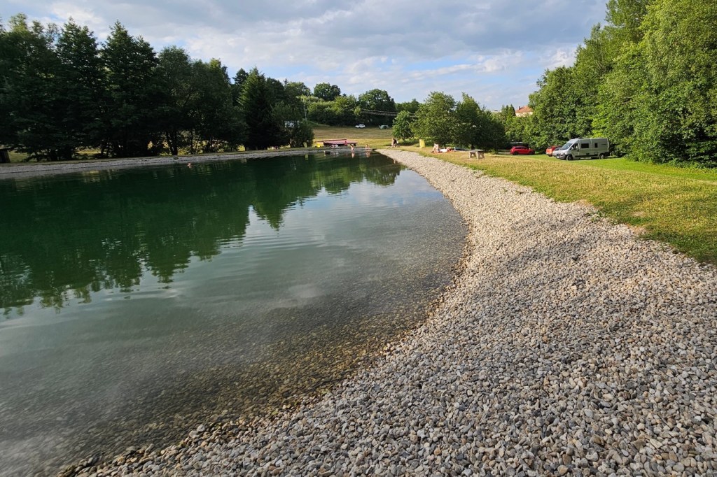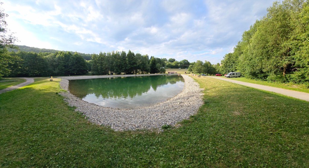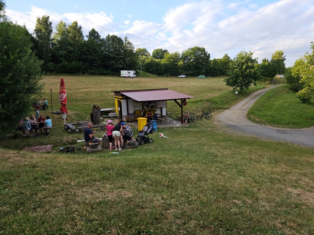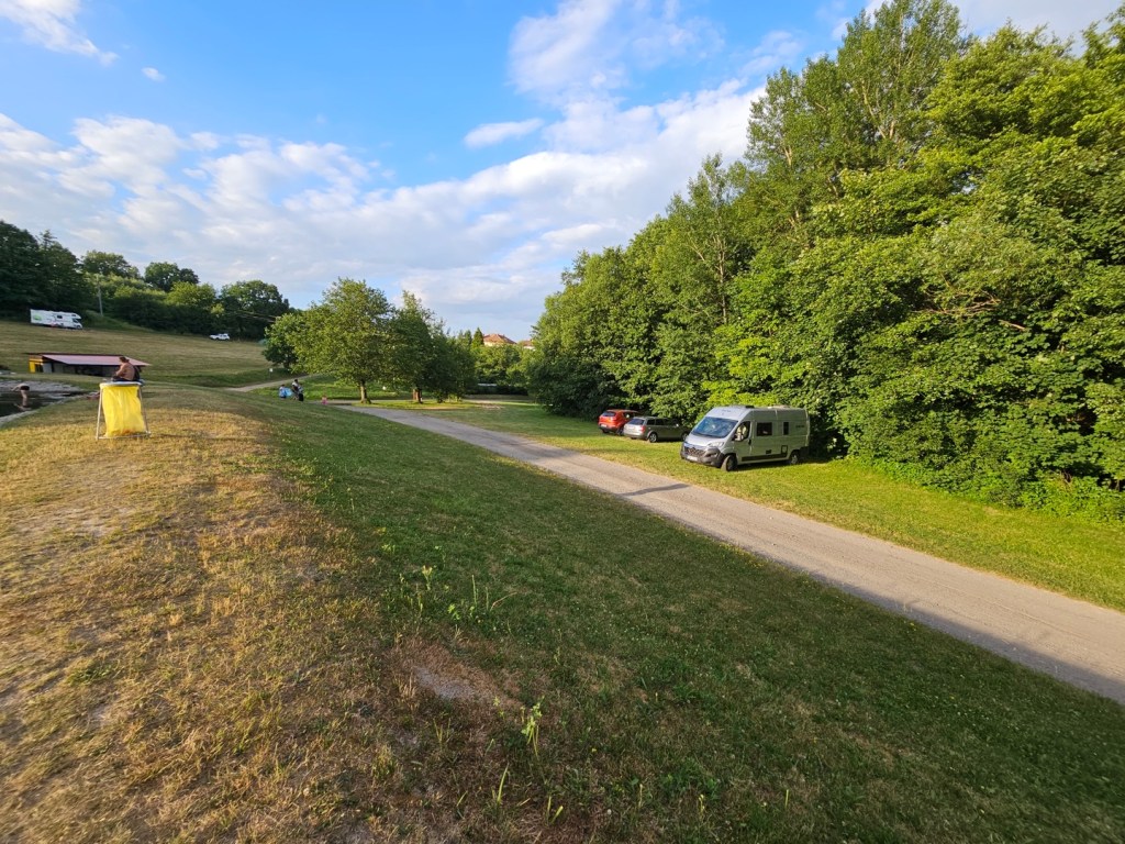 Další možností je využít k pobytu louku nad koupalištěm, kde se nabízí místa přes bezKempu. Za obytné auto nebo přívěs se platí 300 Kč a za dospělého 13 Kč a počítejte s nerovným parkováním Je to spíše už regulerně kemp (v době našeho pobytu zde byly 4 posádky, kapacita až 10 míst, na druhou stranu pozemek je velký), ovšem bez jakéhokoliv vybavení (to je u nádrže). Jak je u služby bezKempu obvyklé, ani tady se moc neřeší odpady.