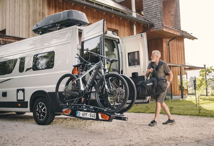 Společnost Thule představila na veletrhu Caravan Salon v Dusseldorfu dvě novinky pro přepravu jízdních kol na obytné vestavbě. Dostupné budou ale až příští rok (2024), v prvním nebo druhém čtvrtletí. Cena tedy není zatím známá.