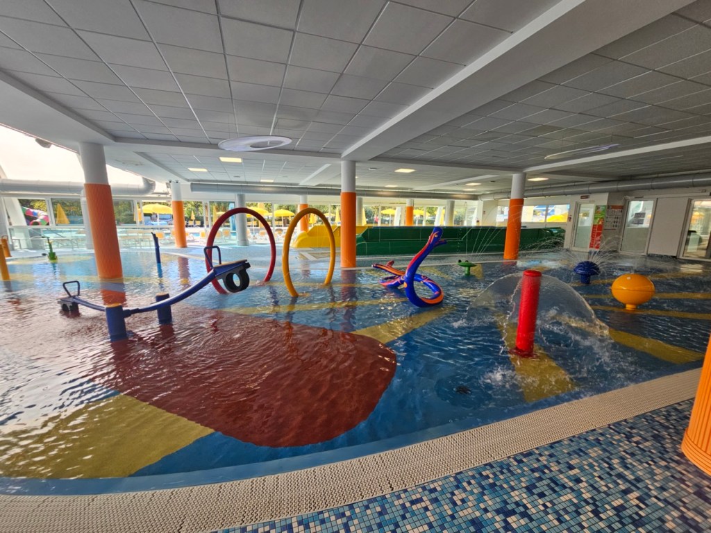Uvnitř kempu je pak ještě velké koupaliště, jehož část je krytá. V případě nepřízně počasí se tedy lze i nadále koupat. V prostoru koupaliště jsou i tři delší tobogány, které poskytnou dostatek zábavy. Dále je zde jeden vířivkový bazén, do kterého je ale umožňuje vstup jen dospělým. Najdete zde i menší vyhřívaný bazén, bazén pro děti a jeden velký bazén s běžnou teplotu vodou. Uvnitř, pod střechou , je pak velký zážitkový kruhový bazén. Ten se mění buď v bazén s umělým vlnobitím a nebo v divokou řeku.