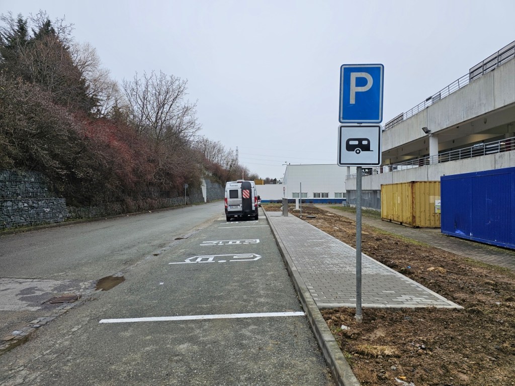 Vhodnost na delší stání – samotné stání také není nijak pěkné, sice hned po kraji je zpevněná plocha, ale židličky či markýzu si zde nikdo nevyloží, není to vysloveně kempovací místo a neláká na delší pobyt. K tomu všemu je zde jen jedno místo pro obytné vozidlo na stání. Při přespaní bych se zde úplně necítil komfortně nebo bezpečně, paralelně s místem vede vjezd zásobovacích vozidel do centra a nákladní vozy jsou zaparkovány podél celé přístupové komunikace. Typicky je to tak spíše tranzitní stání, popřípadě jen místo, kde zaparkovat s karavanem, pokud potřebujete nakoupit. Vchod do nákupního centra je hned za rohem parkovacího domu přiléhajícího ke stání a nákup potravin v Tescu je tak snadný. Přední otevřené parkovišti centra bývá občas docela plné.