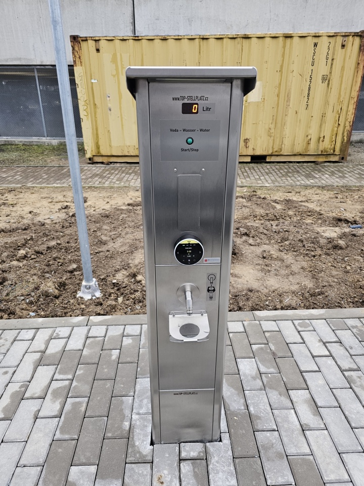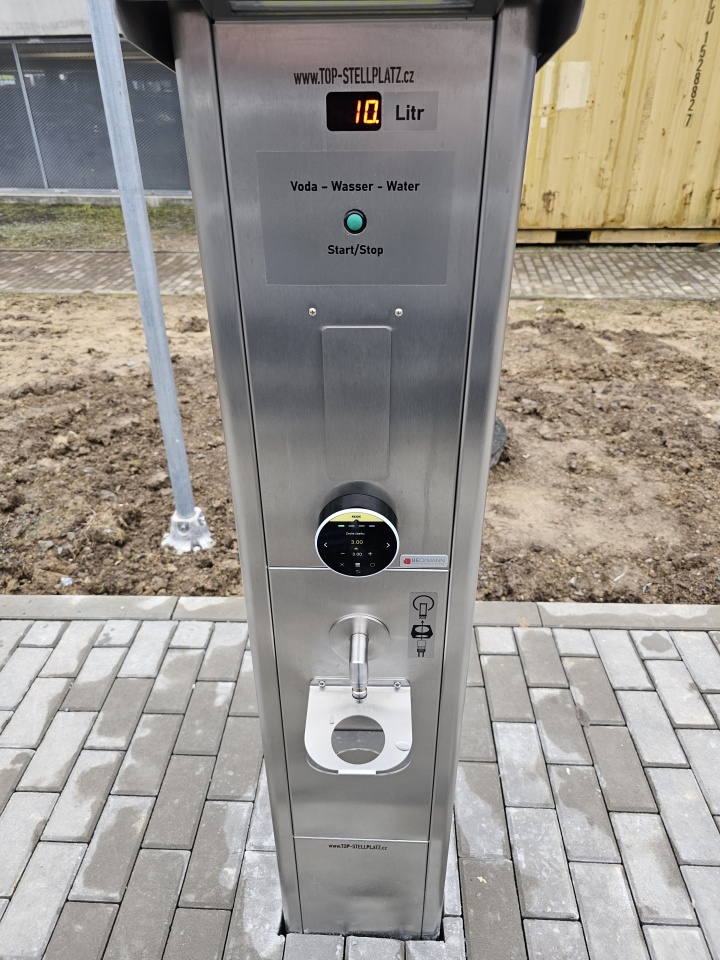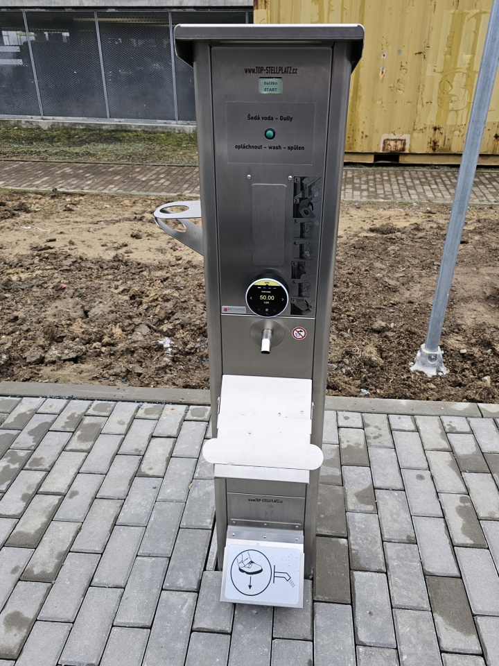 Jeden ze sloupků slouží pro vylití WC kazety a její oplach, druhý sloupek pak funguje jako zdroj pitné vody. Takové rozdělení funkcí je v souladu s filozofií výše uvedené německé firmy, která preferuje provedení servisního místa s fyzicky oddělenými místy pro odpad a pitnou vodu. Oba sloupky jsou vybaveny platebním terminálem a jejich služby jsou tak zpoplatněné.