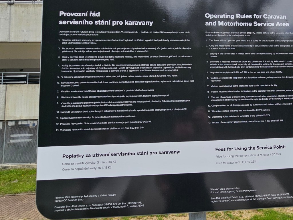 Nezbývá než doufat, že tohoto příkladu budou následovat další obchodní centra nejen v Brně, ale v celé ČR a budou na karavanisty na svých parkovištích více pamatovat. Ať již vyhrazením míst na stání a nebo možností provedení servisu.