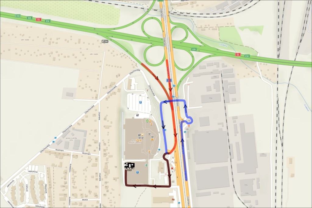 Jedno stání a servisní místo lze nalézt za parkovacím domem obchodního centra. Příjezd se může zdát trochu krkolomný, zejména při příjezdu ve směru od Rakouska, nicméně je dobře značený ve své poslední části. Pro nalezení snad pomůže tato mapka s označenými příjezdy buď ve směru z Vídně po D52/52 (označeno modře) a nebo ve směru z města či od sjezdu z dálnice D1 na dálnic D52 směr Vídeň (označeno červeně). V obou případech stačí sledovat výjezd na nákupní centrum: