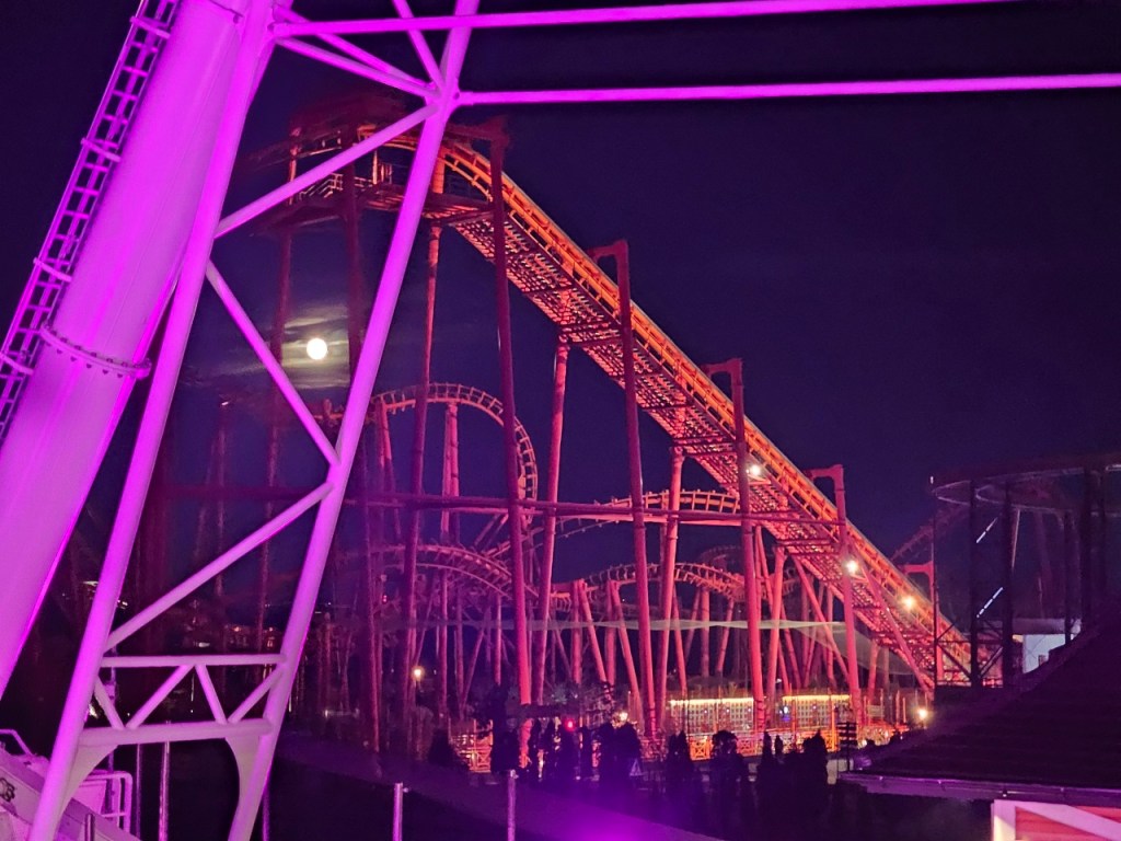 Po setmění si navíc lze park vychutnat i jinak, ozářené horské dráhy i další atrakce vytváří pěknou podívanou, hra světel, stínů, mraků i kouře zkrátka děla svoje: