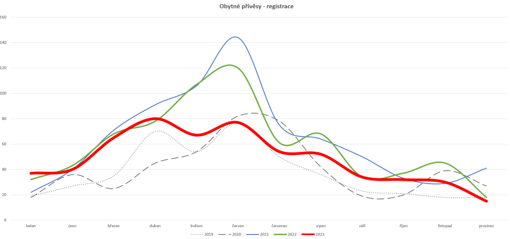Veselejší pohled ale nabízí čísla registrací za celý rok, celkem 583 nových obytných přívěsů je stále výrazně více než v roce 2019. Tehdy bylo registrováno jako nových 448 přívěsů. I u obytných přívěsů tak byl rok 2023 třetím nejlepším v historii ČR a to i přes meziroční pokles o 18%.