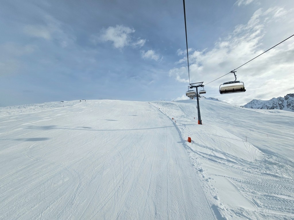 První ze zmíněných šesti sedaček, Weißspitzebahn, uprostřed areálu, obsluhuje především červené sjezdovky, byť je zde i jedna modrá dolů. Druhá šesti sedačka Leppleskofel je pak vstupenkou do světa pokročilejších lyžařů a dává možnost dostat se dolů jen po jedné z černých sjezdovek. Vyveze vás až do výšky 2.683 m.n.m. Nebyl jsem na začátku sezony dobře rozježděný, tak jsem si nechával tuhle část spíše na odpoledne, ale pak se zhoršilo počasí a tím i má odvaha vyzkoušet náročnější sjezdovky.