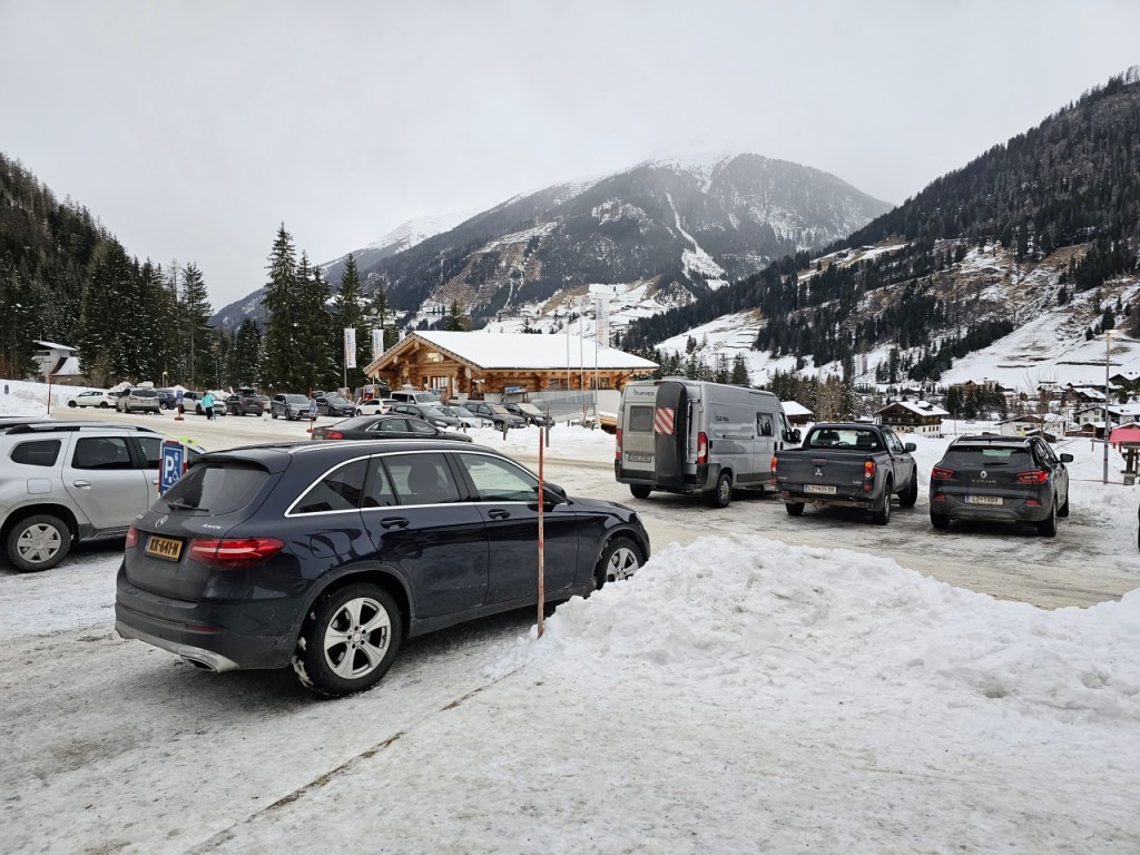 V St.Jakob jsme byli poprvé a nebyl jsem jist, jak je to tam s parkováním – ostatně ani na P4N není k nalezení moc informací. Takže jsem po příjezdu nezaparkoval hned u spodní stanice lanovky. Sjel jsem o trochu níže, na velkou plochu, která slouží jako parkoviště při větším zájmu návštěvníků. Spodní část této plochy je i relativně rovná, na rozdíl od dalších ploch (ale u stanice je plocha rovnější, to spíše při příjezdu a parkování podél cesty jsou místa nerovná, respektive ve svahu).
