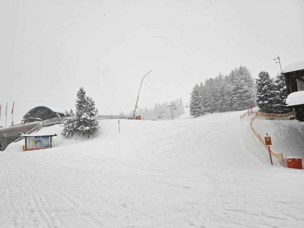 Nahoru do areálu se lze dostat kabinkou. Obsluha nás hned ráno varovala, že v provozu je jen jedna sedačka v nižší části areálu a sjezdovka kolem ní, dále jedna poma a to je vše. Moc nám to nevadilo, podobné počasí panovalo stejně všude kolem v rozsahu cca 100-150km, takže na výběr moc nebylo. Vícedenní skipas platil i zde.A proč nebyla většina areálu v provozu? Dost sněžilo a výše i dost foukalo.