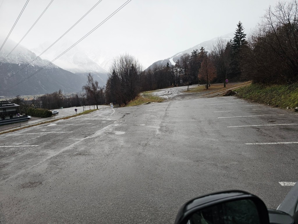 Noc byla klidná, ráno jsme pak přejeli k parkovišti přímo u lanovky, vzhledem k počasí zde ostatně moc nových aut neparkovalo. Je to jen kousek. Najít místo na stání bylo snadné. Parkoviště u dolní stanice je dost prostorné, navíc lze parkovat i na další ploše umístněné při vjezdu na parkoviště a nebo nahoře, na ploše v zatáčce hlavní silnice.