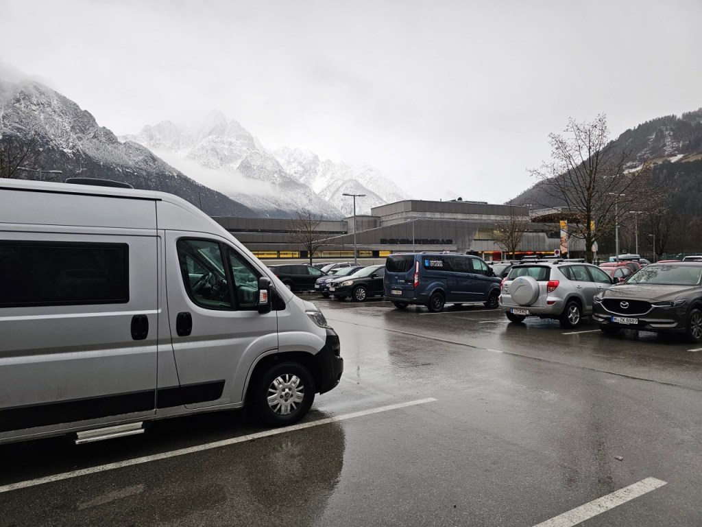 Na začátek snad jen upozornění. V Tyrolsku je obecně zakázané spaní přes noc v obytných vozidlech a mimo vyhrazené plochy při turistických pobytech. Na místo přijíždíme až později večer, snažíme se na sebe nijak zvlášť neupozorňovat (nicméně přední půl kabát nasazujeme) a ráno odcházíme lyžovat, zatím nám to vždy prošlo.