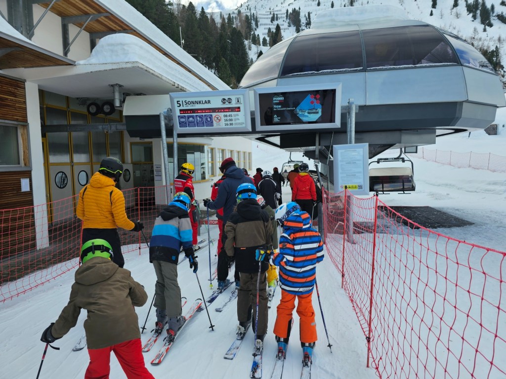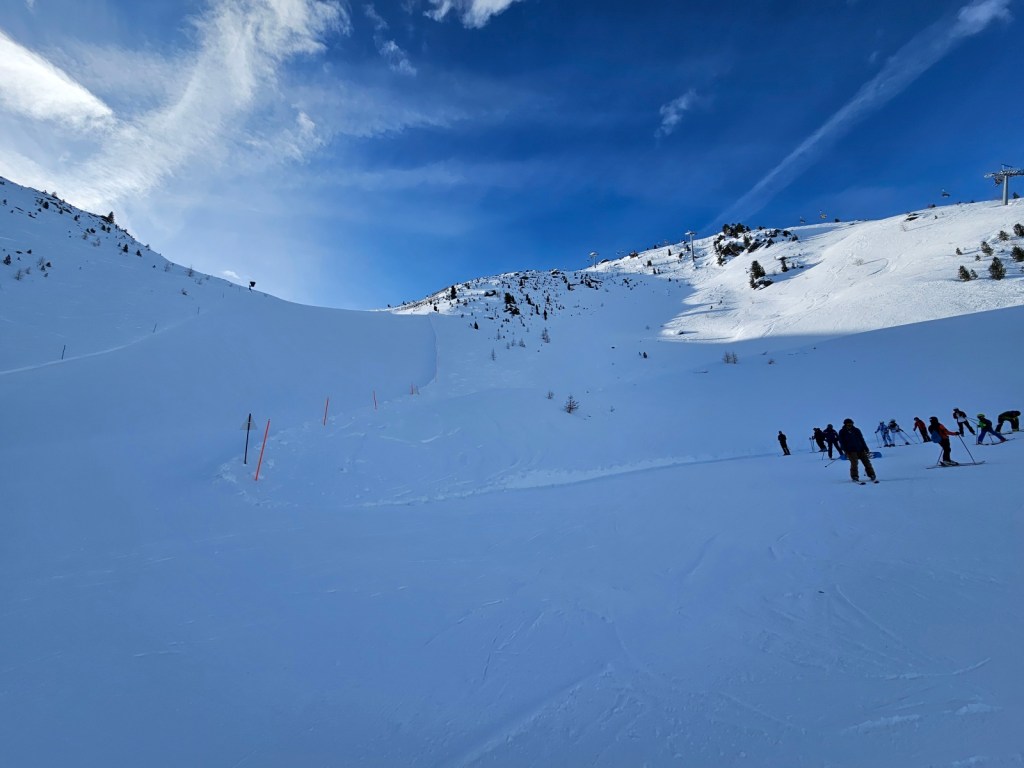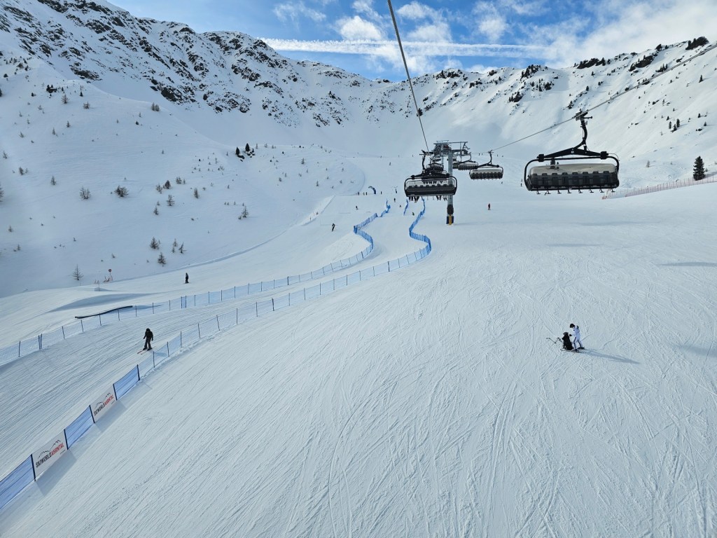 V době naší návštěvy byla mimo provoz nová kabinková lanovka Sonnen, a tedy část červených sjezdovek nebyla dostupná. Jezdili jsme tak převážně v horní části areálu obsluhované kabinkou K2.