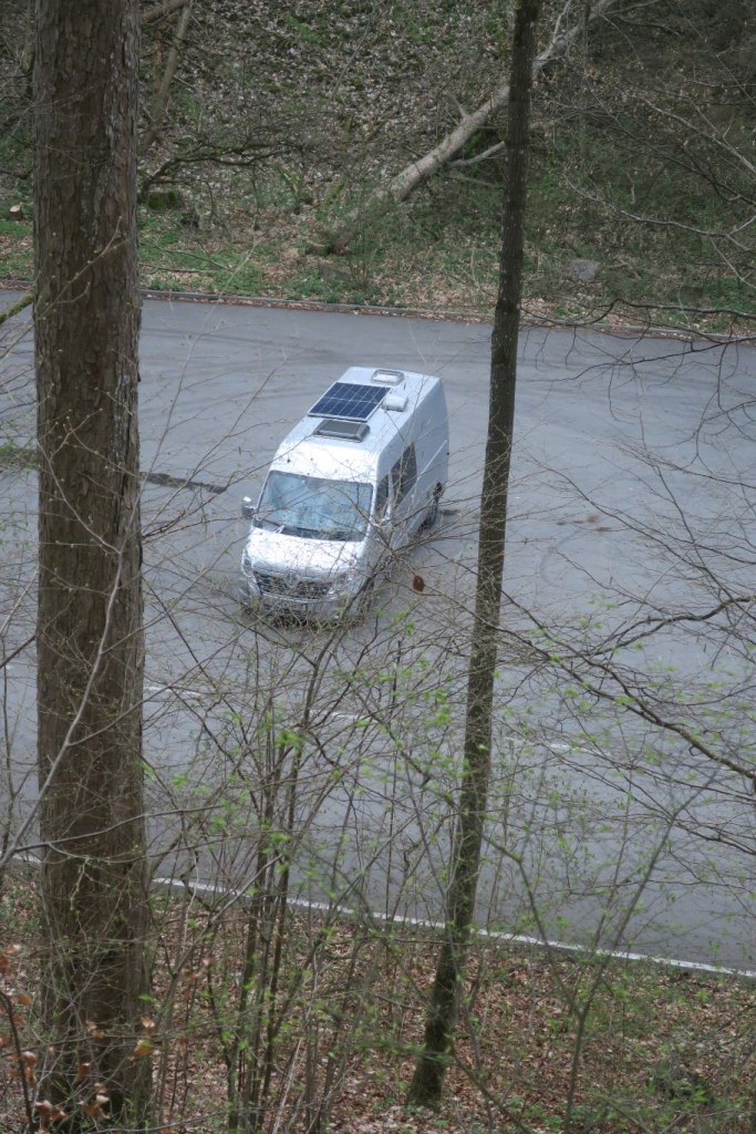 Dálnice je taky docela zaplněná, tak jsme rádi, že můžeme za Velkým Meziříčím utéct na normální silnici s normálním provozem směr Blansko. Na parkoviště na Skalní Mlýn dorážíme dle plánu kolem jedné hodiny. Platíme 200 Kč a jsme nasměrováni na parkoviště P3, které je vyhrazené pro obytná auta.