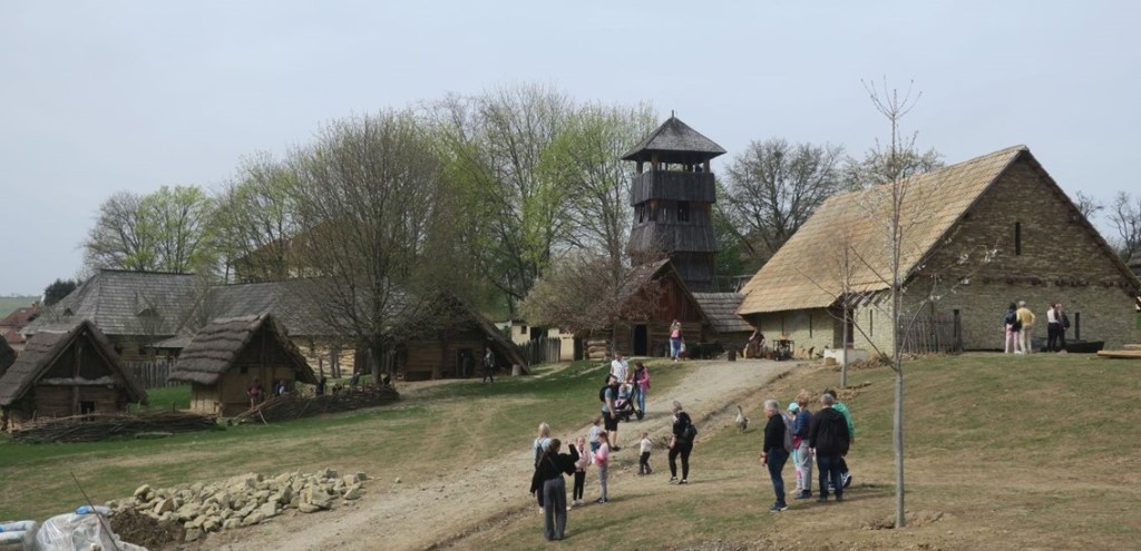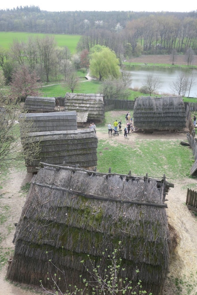 Přesouváme se tak po cyklostezce kolem rybníků na okraj obce do Archeoskanzenu Velké Moravy, který byl vybudován v místě původního velkomoravského osídlení. Objekt je obehnán dřevěným opevněním a vcházíme do něj vstupní bránou. Uvnitř se nachází různé dobové stavby s podrobným popisem, který dostane každý návštěvník při vstupu. Jsou zde obydlí – zemnice různých typů, dále pak pekárna, kovárna, hrnčířská dílna, knížecí palác, rotunda, ale i rozhledna. Mezi návštěvníky volně pobíhají husy a dotváří tak efekt historického osídlení.