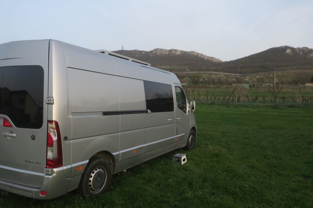 Pozemek pod Pálavou je velký a jsou zde s námi další dvě „posádky“. Ale nikterak si nepřekážíme. Vzhledem k velmi silnému větru je každý rád schovaný a my v závětří za autem pleteme pomlázky na Velikonoční pondělí. Večer ještě ochutnáme víno v nedalekém sklípku a jdeme spát.