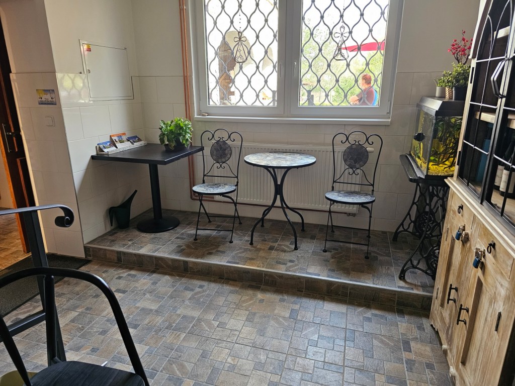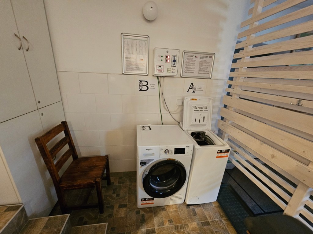 V přední části areálu, blíže vjezdu, je pak veškeré potřebné zázemí, je zde malá kuchyňka s kávovarem a samoobslužným barem, sprchy, pračka i sušička, základní informace o okolí. K tomu bohatě dimenzované posezení jak venku, tak pod střechou. Zkrátka taková příjemná relaxačně odpočinková zóna.
