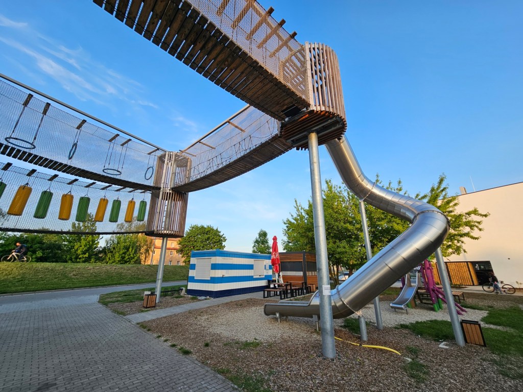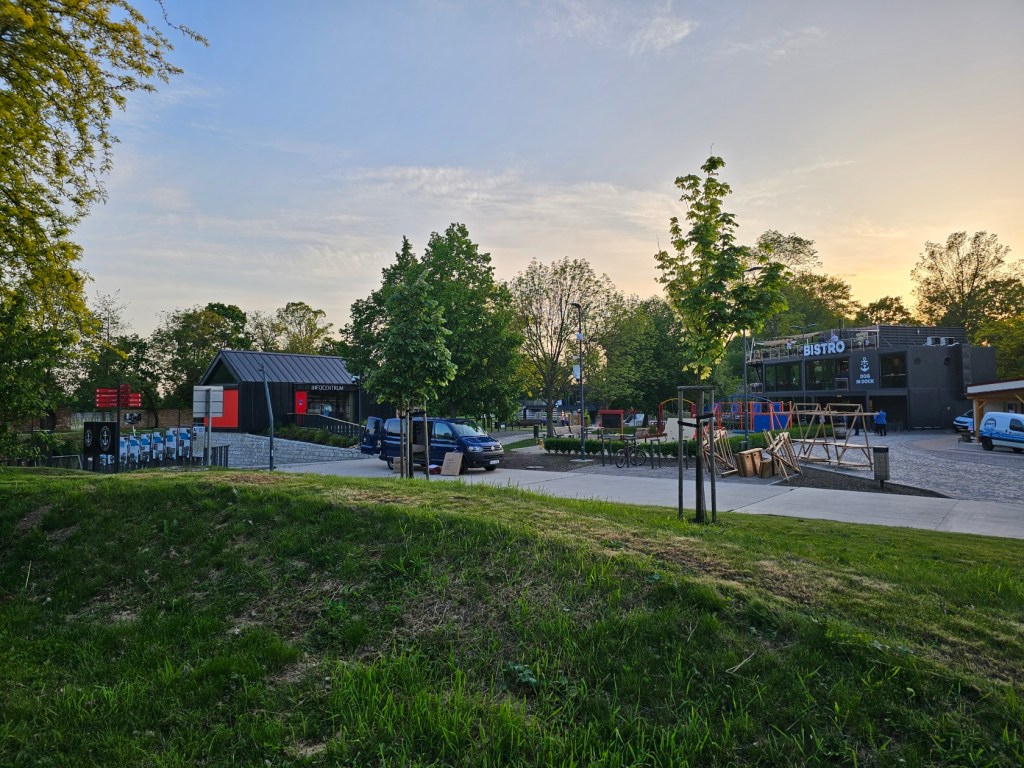 Celý areál připomíná spíše otevřený a plně vybavený kemp, chybí snad jen bazén ke koupání. ten nahrazuje na začátku skate park a lanové centrum, v přístavu je i bistro. Lanové centrum je ale v provozu jen v letních měsících, vstupné na tří hodiny je mezi 120-140 Kč, rodinné vstupné 340 Kč. U lanového centra je i možnost dobít se elektrokolo. Dětské hřiště je i v areálu přístavu.