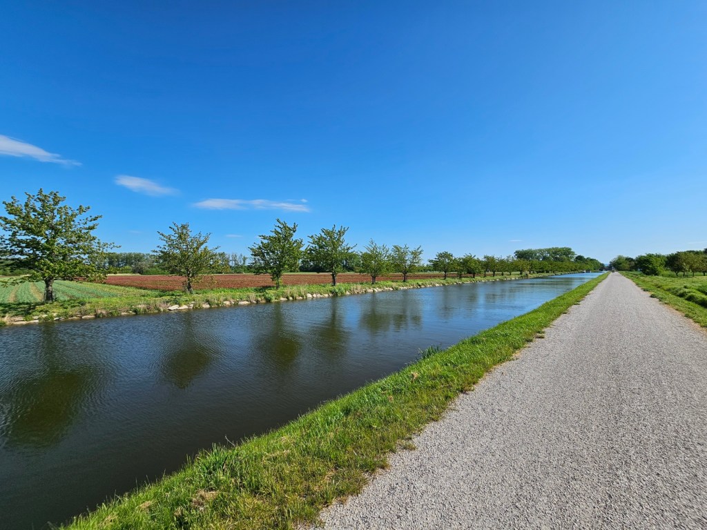 Co se týče toulek na kole, kvalita a povrch cyklostezky se postupně mění, stejně jako bezprostřední okolí. Většinou se jede v otevřené krajině, kde sluníčko, pokud je na obloze, docela pěkné pálí (naštěstí v každém přístavišti po cestě je dostatek možností občerstvení), u Strážnice se zanoří do lesa. Je vidět, že přístaviště po trase kanálu procházela rekonstrukcí, u některých je možnost stání zdarma, v Petrově ale zpoplatněna. Terén je celkově nenáročný a více než vhodný pro výlety i s menšími dětmi. Navíc po cestě je toho dost k vidění, přes vlastní zdymadla, až třeba i po ne zcela obvyklou faunu a floru.