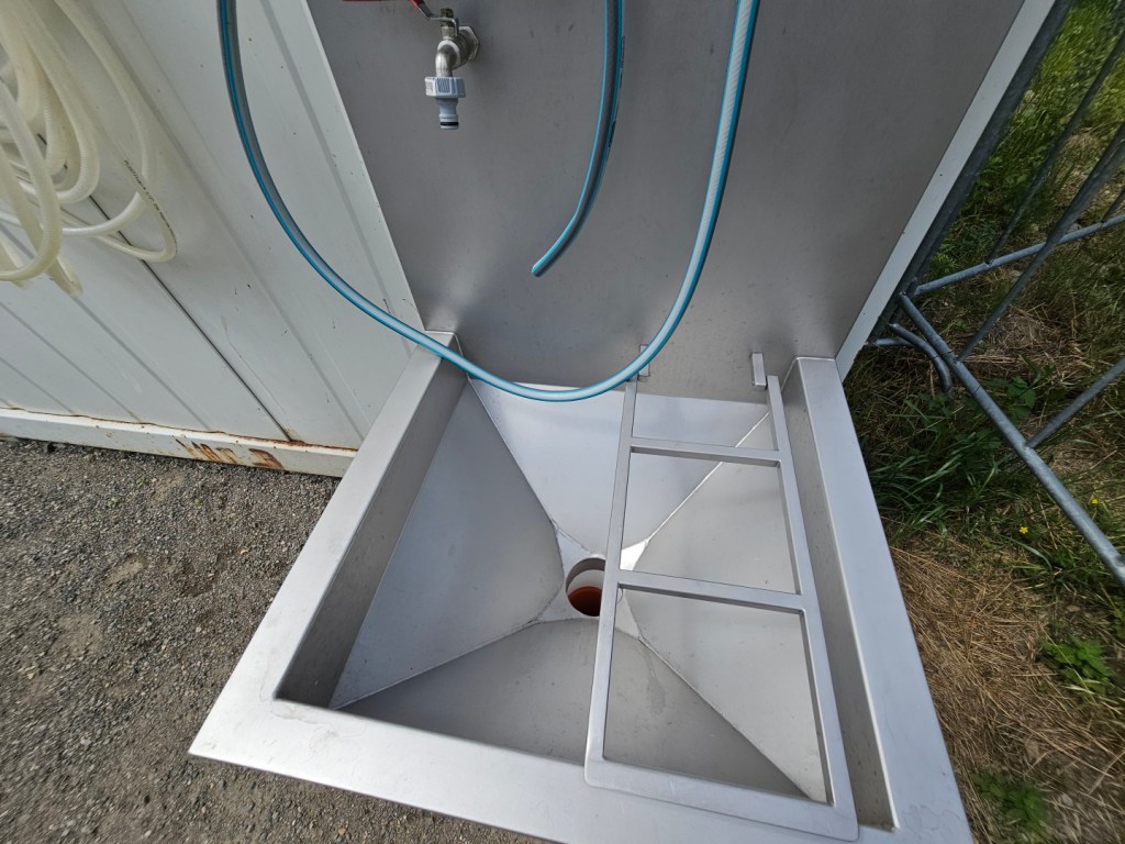 Trochu netradičně jsou zde i sanitární kontejnery se záchodem, umývárnou a sprchou – jeden pro muže, druhý pro ženy. Samozřejmě, že jsou stání, kde je i toto vybavení, ale běžné to není. Vybavení samozřejmě odpovídá tomu, že se jedná o kontejnerovou konstrukci, ale dostačuje: