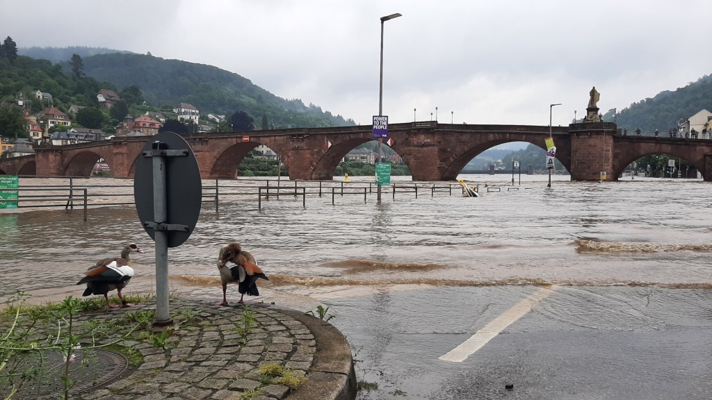 Ráno máme v plánu nechat na štelplacu dlouhého Rimora našich přátel a všichni odjet naší vestavbou na výlet do Heidelbergu, který je odtud cca 12km. Jde o staré historické univerzitní město na řece Neckar. Našli jsme místo na zaparkování blízko nábřeží a jdeme podél řeky k centru města. V tuto dobu bylo Německo vystaveno trvalým dešťům (za nás už neprší) a řeky jsou rozvodněné. To platí i pro Neckar, kde vidíme zaplavené ostrůvky uprostřed řeky. Jak jdeme blíže k centru, situace se horší a kolem historického mostu Alte Brűcke jsou zaplaveny i nábřežní silnice a domy. Fotíme, prohlížíme si centrum města, ale na hrad už není čas. Po obědě se chceme vydat na další cestu směr Francie. Před odjezdem ještě tankujeme na pumpě vedle štelplacu a posádka z druhého karavanu je nemile překvapena změnou ceny v průběhu 1 hod. Byli se totiž podívat, kolik zde stojí nafta a když jsme pak o hodinu později konečně najeli tankovat, byla cena o 20 centů vyšší. No, ale oni to tak v Německu dělají. Cena se mění i několikrát za den a motivují nižší cenou místní nakupovat v málo atraktivní dobu.