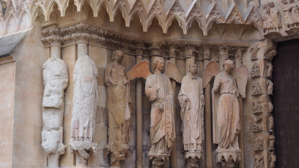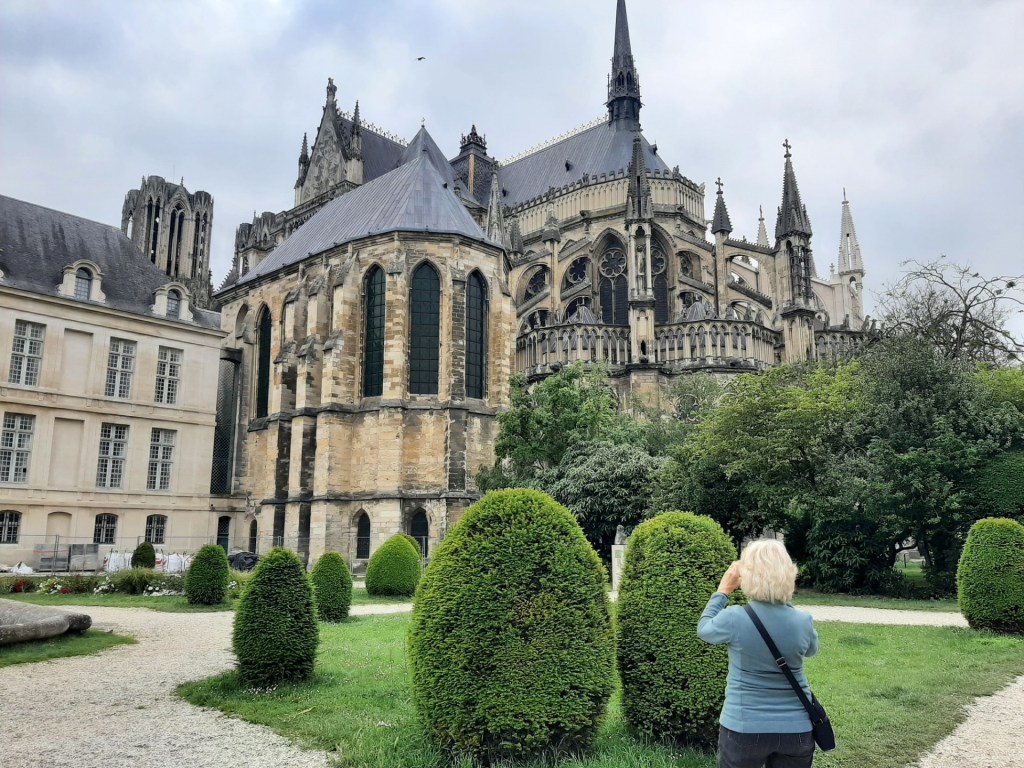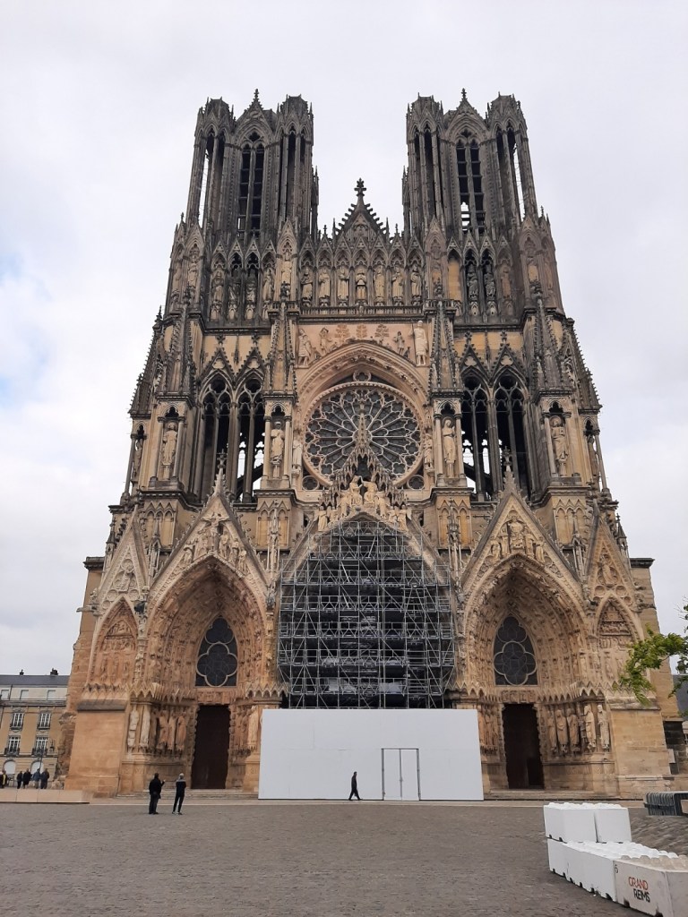 Ještě v podvečer jsme vyrazili opět jen vestavbou do centra Remeše, abychom si prohlédli katedrálu, místo, kde bývali korunováni francouzští králové. Parkoviště v centru měla výšková omezení 2m, takže na to, které jsme si vybrali v mapě, jsme se nedostali. Stáli jsme tedy volně na ulici. Je neděle, takže je i trochu místa a ani se nemusí platit, byť jsou všude kolem parkovací automaty. Neděle je free. Horší je to s katedrálou, kterou nám zavřeli před nosem. Bylo po 19:00 hod. Takže vyfotit si můžeme jen exteriéry.