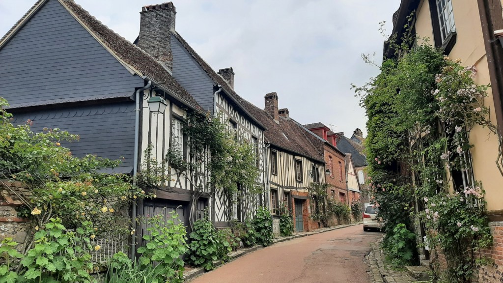 Další náhodnou zastávkou byla vesnice Gerberoy. Několik poutačů cestou na ni předem upozorňovalo, ale to jsme netušili o co jde. Hlavním důvodem naší zastávky byla potřeba si odpočnout, najíst se atd. Zastavili jsme tedy na přírodním parkovišti, kde ovšem byla i informační tabule o vesnici. Hlavně jsem tam zaslechl i češtinu a tak jsem se šel zeptat, o co tady vlastně jde. Bylo mně sděleno, že „to“ musíme vidět! Nejkrásnější vesnice Francie! Tak jsme tedy šli. Opravdu jde o pohádkou vesnici (žádný skanzen, natož Disneyland), která je plná květin, zeleně, starých domů…. Romantické uličky, náměstíčka, zahrady. Kdo rád fotí, tady si přijde na své!
