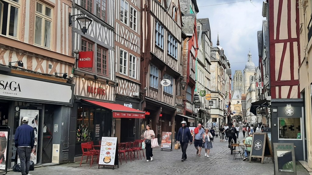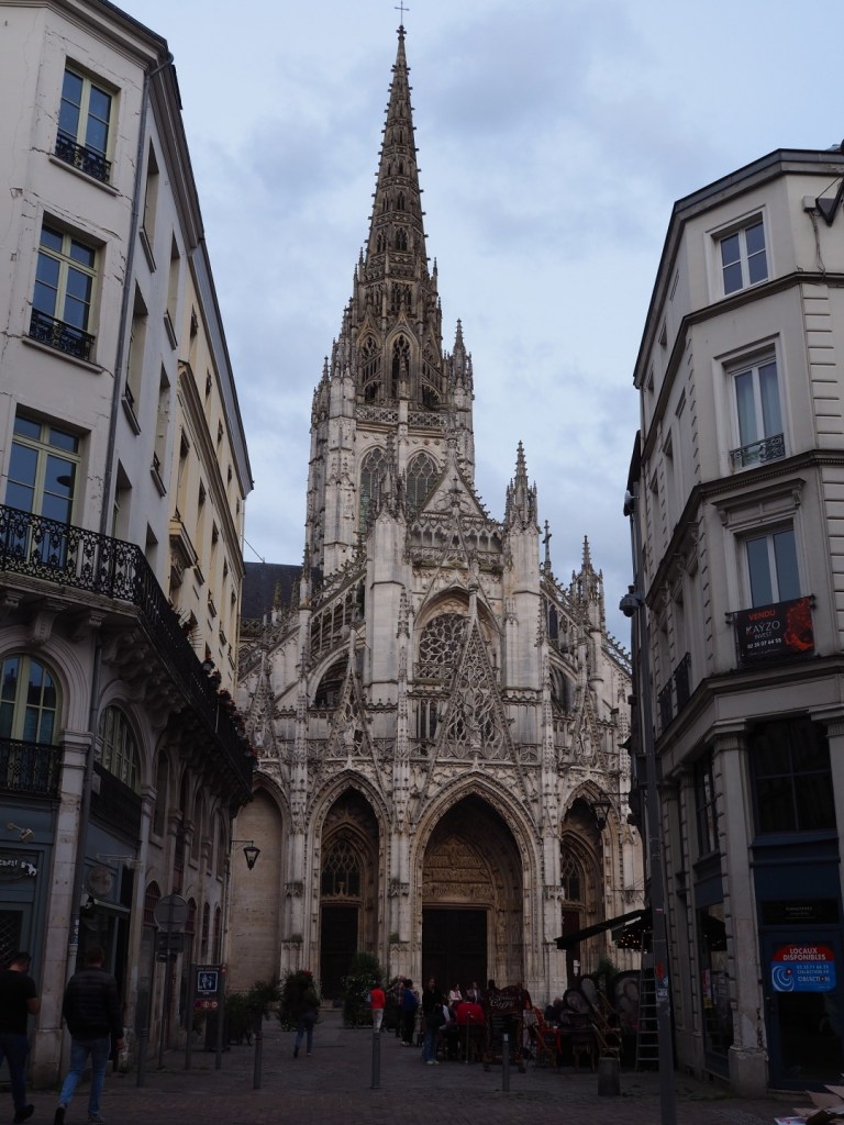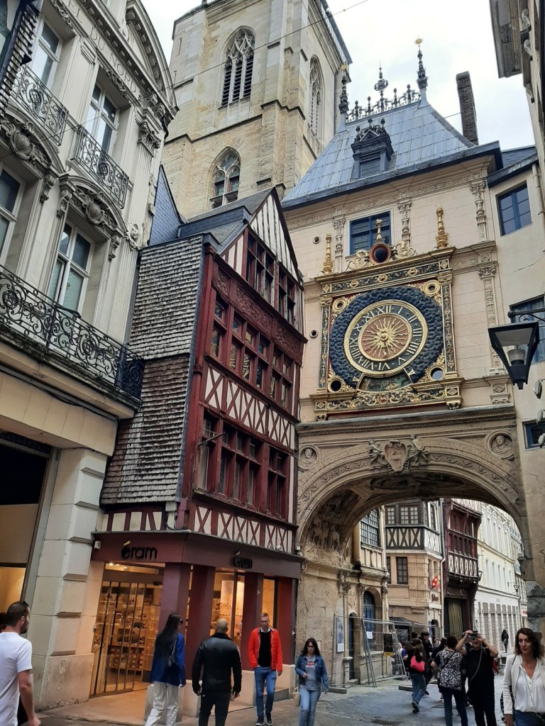 Následně pokračujeme do Rouenu, kde místo pro zaparkování vybíráme podle Park4night. Je to na nábřeží v jakési průmyslové zóně, ale bude to fajn. Do centra města je to pěšky cca 15 min. a tak v podvečer vyrážíme. Rouen je historickým městem, kde svoji životní pouť tragicky zakončila Jana z Arcu. Náměstí, kde je jí zasvěcen nový kostel vedle pozůstatků historického kostela, místo, kde byla upálena a kde je nyní vztyčen velký kříž, to vše je docela působivé. Celé historicé centrum je úžasné. Toto město rozhodně stojí za návštěvu. Mj. ve zdejší katedrále je v sarkofágu jeden z ostatků krále Richarda Lví srdce. Tím ostatkem je právě jeho srdce.
