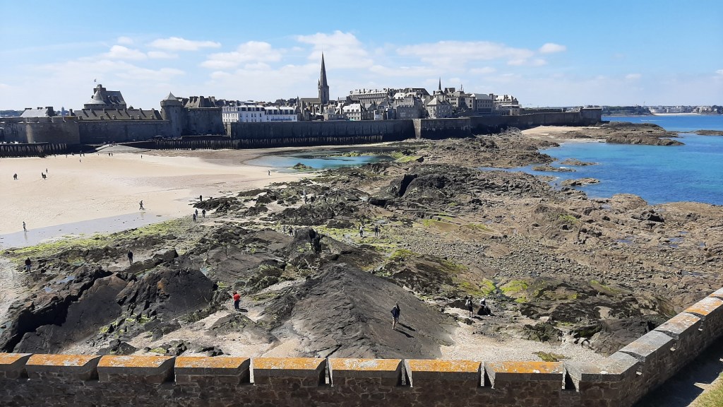 Ještě předtím kdesi na okraji města necháváme dlouhého Rimora a cestujeme k centru vestavbou. Zaparkovat se povedlo na první dobrou, ani parkovné placené v automatu není zas tak drahé, 1,2€ na 3 hodiny. Už příchod k historickému centru je fascinující. Z hlediska oceánu jde o místo, kde je největší rozdíl hladiny v době přílivu a odlivu, činí až 14 výškových metrů. Nyní je odliv a tak se suchou nohou můžeme dostat na ostrůvek s pevností Fort National. On je to vlastně ostrůvek jen za přílivu. Takže prvně míříme na něj, vstupné je 5€. V pevnosti celkem nic není, ale je odtud krásný výhled na historické město a na všechny strany oceánu. Následuje procházka po hradbách města s fascinujícími výhledy, procházka napříč městem s návštěvou katedrály, procházka přístavem, drobný nákup a to je zde vše. Panuje celková spokojenost a nadšení z návštěvy této lokace.