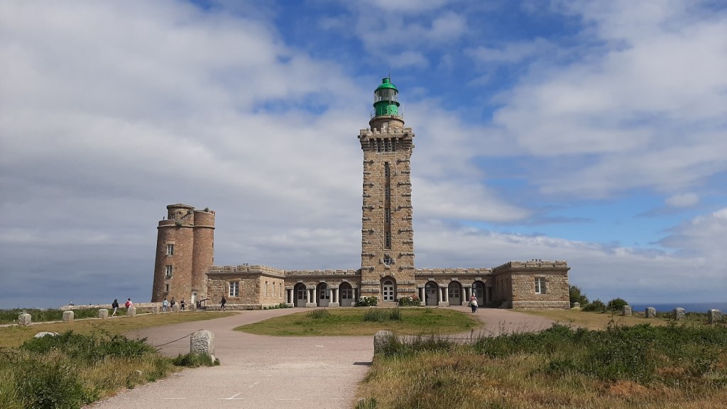 Musíme konstatovat, že to skutečně stojí za to! Pevnost je v soukromém vlastnictví, je perfektně zrekonstruovaná, má spoustu informačních tabulí s popisy a vysvětlivkami, takže na ní trávíme poměrně dost času. Po doslova climbingu na vrchol věže je nahoře perfektní rozhled do širokého okolí vč. zpětného pohledu přes zátoku na maják Fréhel.