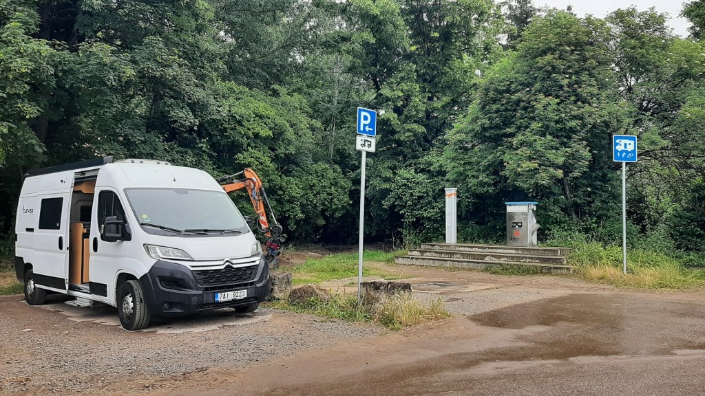 Štelplac v Dol de Bretgne je na automat, po zaplacení se zvedne závora a je možné vjet na dobře udržované místo, kde je v rámci jednoho cenového paušálu vše, vč. přípojky elektro. Je blízko centra, kde je mj. i veřejné WC. I městečko stojí za návštěvu. Monumentální gotická katedrála, historické hrázděné domy, krásné centrum města. Prostě tady začíná Bretaň!