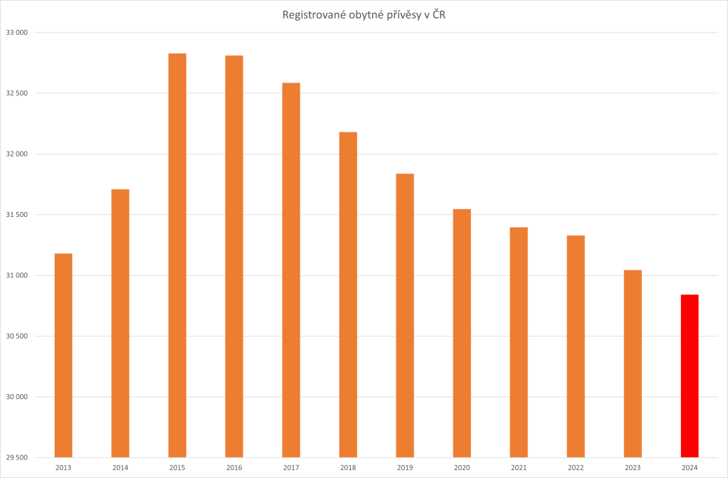 - 30.841 obytných přívěsů (úbytek -203 v porovnání s koncem roku 2023 )
