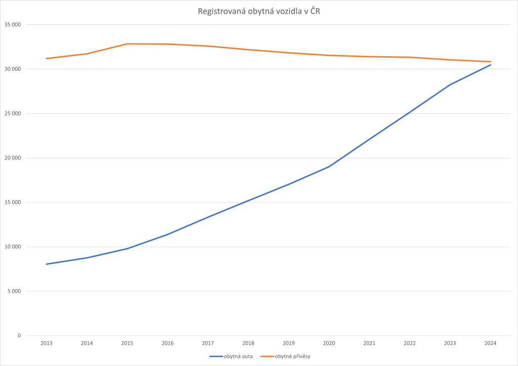 - 30.470 obytných aut (přírůstek +2.237 v porovnání s koncem roku 2023)