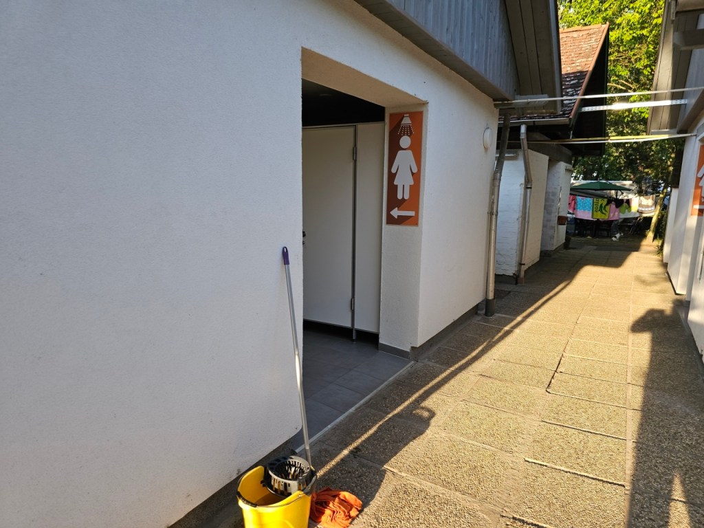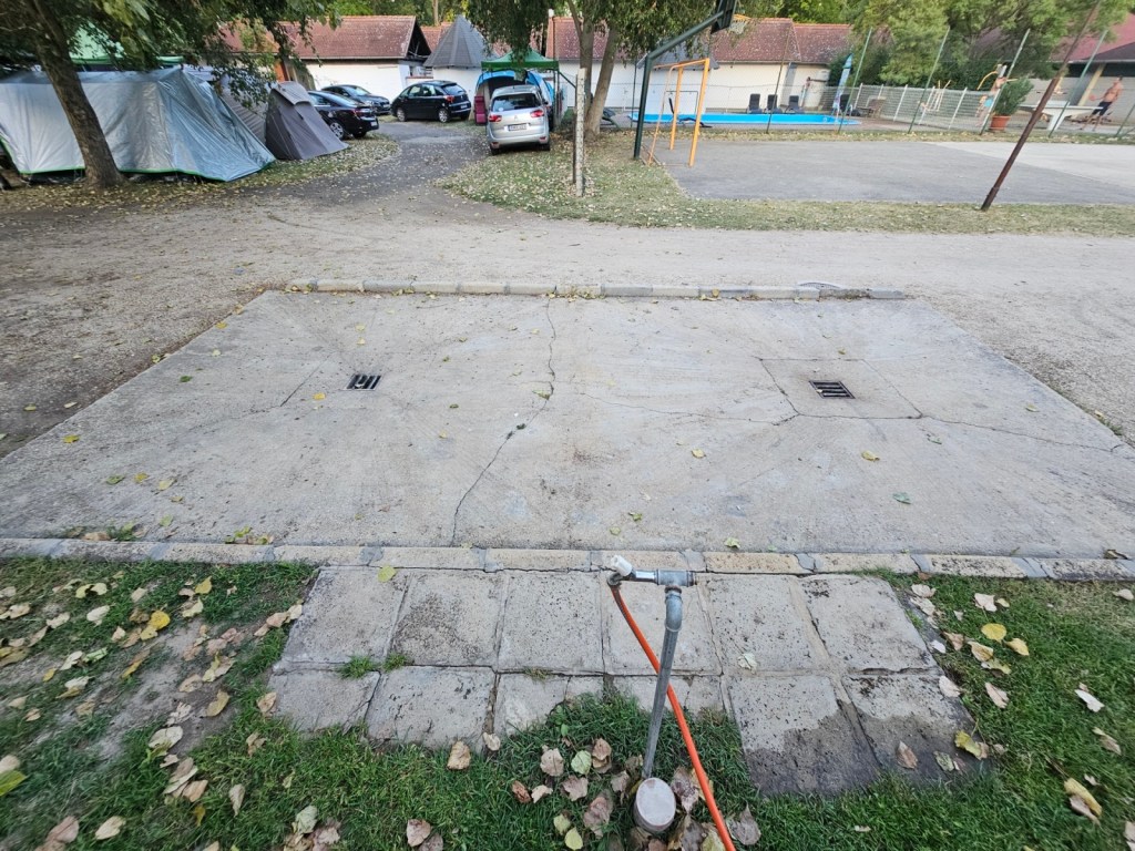 Kemp měl i malé servisní místo pro obytná vozidla – jednoduchý betonový plácek s odvody pro odvod vypouštěné šedé vody a hadicí pro oplach/pitnou vodou. WC kazetu lze vylít do výlevek ve vedlejším přilehlém sociálním komplexu. Spartánské, ale funkční. Sběrné místo na odpady je na opačné straně této části kempu, odděleno plotem.