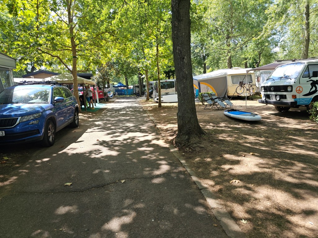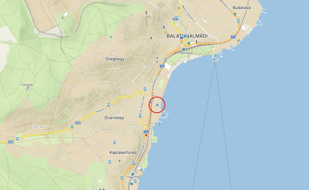 Měl jsem vytipováno pár kempů a zkrátka jsme jen jeli a ptali se. První kemp byl beznadějně obsazen, ale hned v dalším, Yacht Camping (https://yachtcamping.hu/), bylo místo. Byť tedy jen v rozšířené části kempu, kde nás napřed poslali se na místo podívat, jestli jej skutečně chceme. Bylo totiž vystaveno slunci, chyběli zde stromy, které byly ve většině kempu. Ale zrovna tohle nám nevadilo, takže jsme místo vzali. Výhodou kempu je poloha hned u jezera a vlastní přístup k jezeru, navíc se lze i projít pohodlně po břehu do blízkého centra města Balatonalmáldi. Zde je i nádraží, pokud by někdo chtěl využít železnici k prozkoumávání míst na břehu Balatonu.