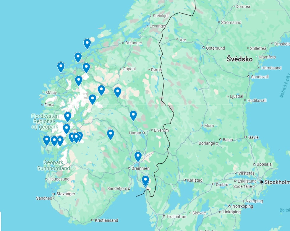 - Po celém Norsku jsou volně přístupná servisní místa, kde lze vypustit odpadní vodu a WC a udělat základní servis s doplněním pitné vody. Většinou jsou tyto služby zdarma.