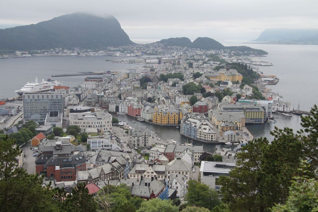 Pokračujeme do Alesundu na vyhlídku na kopci Aksla, odkud je krásný výhled na celé město – Benátky severu. Upřímně řečeno, Alesund se nám více líbil z vyhlídky než dole ve městě, kde nás nic nezaujalo. Pokračujeme tedy dále a spíme u přístavu kousek před Liadal.