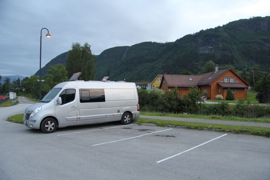 My si vyhlídku pořádně užijeme, a když jsou všichni nasyceni výhledy, sjíždíme do Geiangeru. Cestou se ještě zastavujeme na krásných vyhlídkách na fjord a městečko. Po krátké prohlídce města vyjíždíme směrem na sever a hledáme vhodné místo na přespání. Na prvním parkovišti je přespání zakázané, ale kousek dál u tunelu Oppskredtunnelen stojí spousta „obytek“ a stanů na staré silnici. Ještě tam na nás nějaké to místečko zbylo a zůstáváme na noc zde. Sice stojíme dost z kopce, i když jsme použili klíny, ale jednu noc to ničemu nevadí.