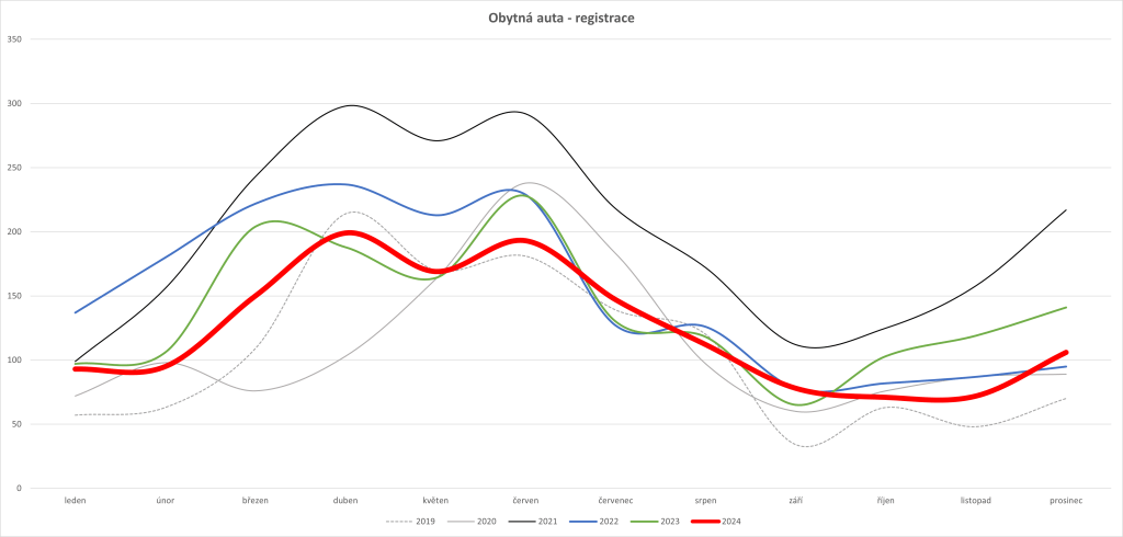 Rok 2024 byl čtvrtým nejlepším rokem v historii registrací nových obytných vozidel. Nicméně pokles v počtu registrací nových obytných vozidel pokračuje a rok 2025 může přinést pokles počtu registrací nových obytných vozidel na úrovni let 2019 či 2020. Zde je ale nutné upozornit, že se jedná o počty nových obytných vozidel ve kterých nejsou zahrnuty dovezená ojetá obytná vozidla. Ta v uplynulých letech stála za dramatickým vzestupem počtu obytných aut v provozu na našich silnicích a rok 2024 či 2025 nebudou vyjímkou. Obytných aut tak bude u nás i nadále podstatně přibývat.