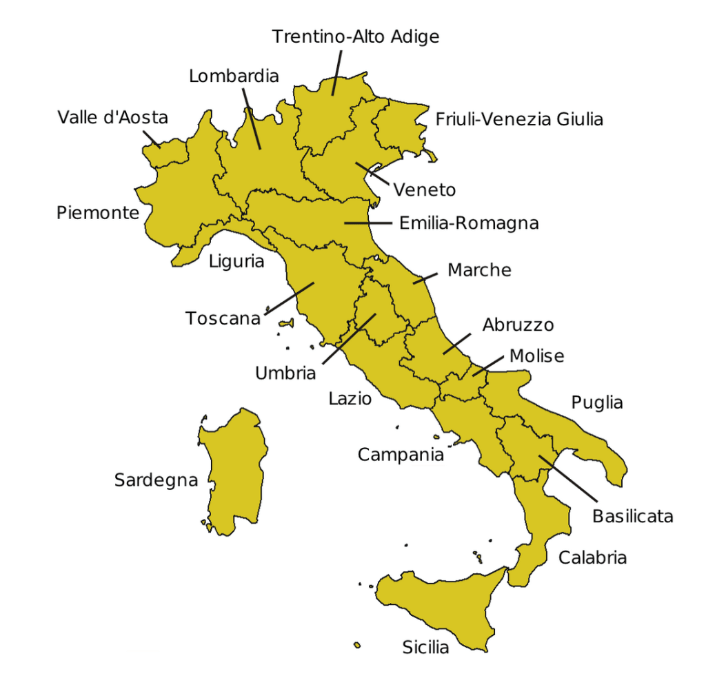 Pro snazší orientaci mezi jednotlivými regiony Itálie může pomoci tato mapka:
